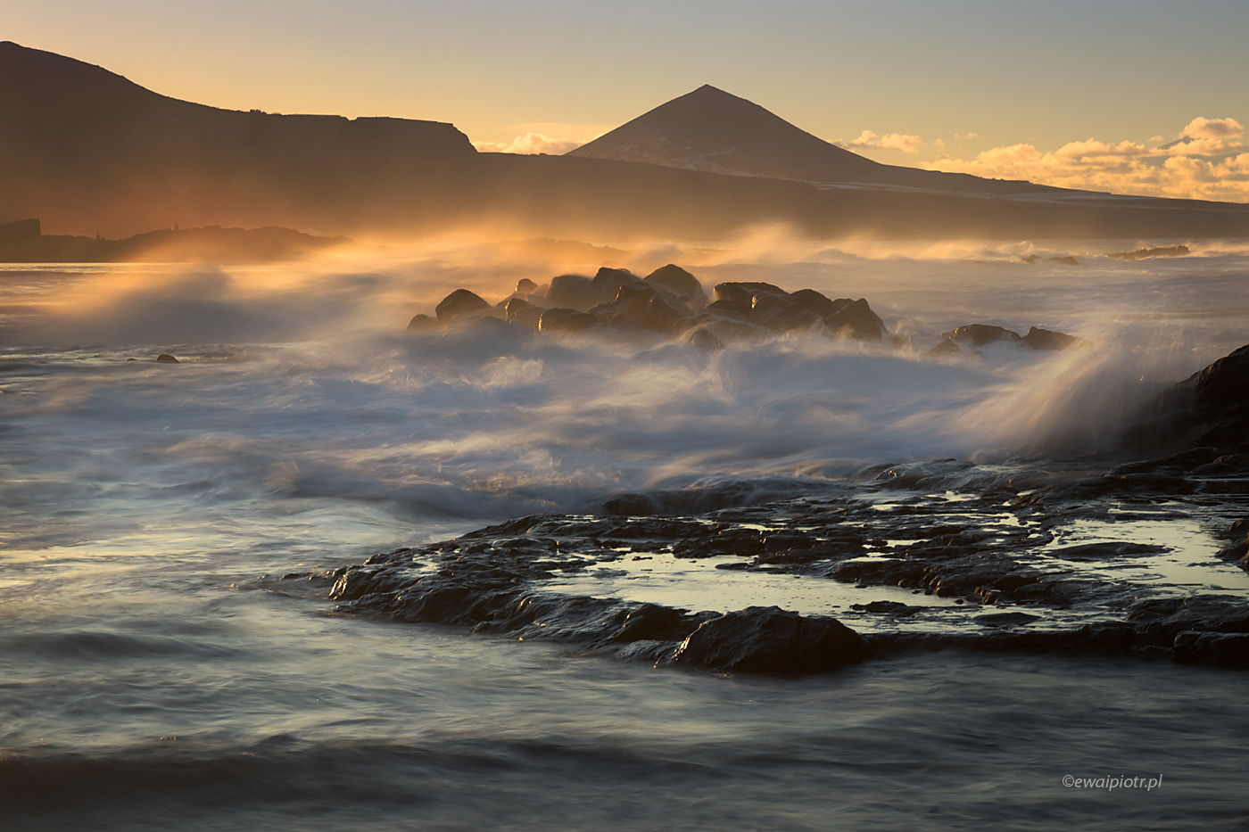 Zaczniemy od sesji o wschodzie słońca przy jednym z najdziwniejszych miejsc na Kanarach. Przybrzeżne skały są tak uformowane, że wydaje się, że morze wlewa się do nich i znika jak w studni. Co więcej, każda fala powoduje powstanie niewielkiego wodnego gejzera.